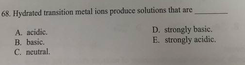 Unsure No idea Think so. As previously mentioned transition metal complexes have bright colours. Alkaline earth metal ions are only slightly acidic.