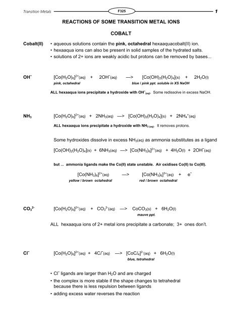 Reactions Of Some Transition Metal Ions Cobalt Knockhardy