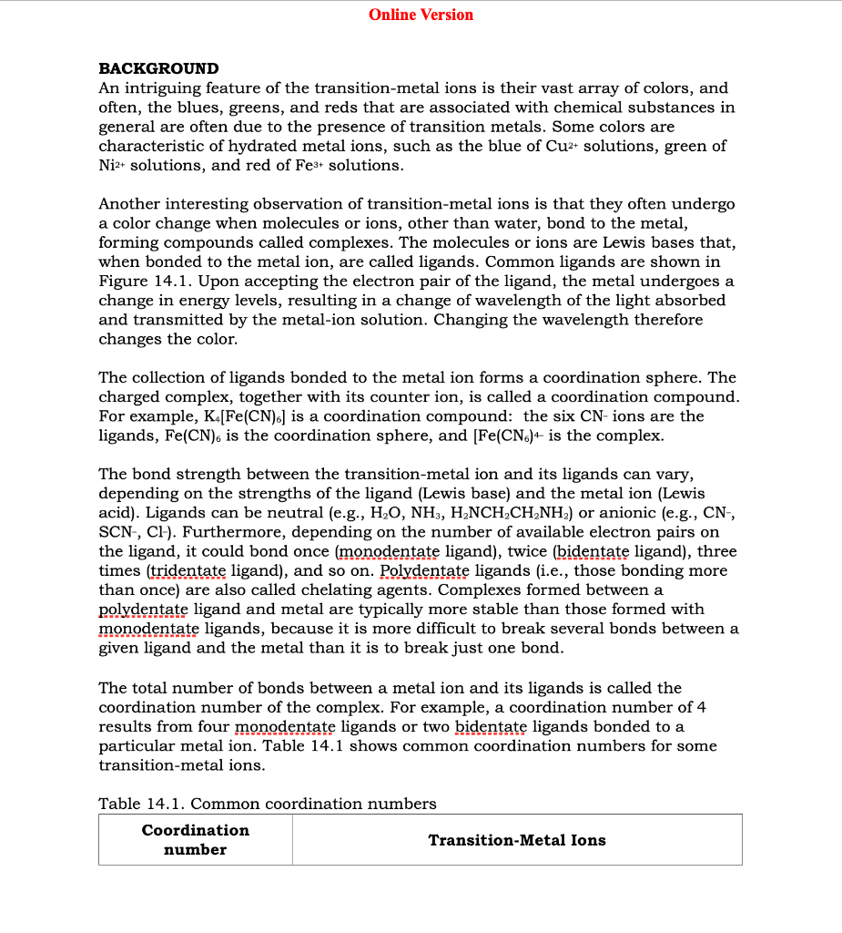 Solved Hydrated Transition Metal Ions Produce Solutions That Chegg Com